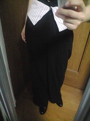 ちなみに服装は、黒地に白のピンストライプが入ったパンツ&ベスト。