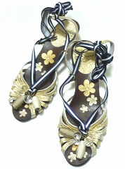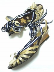 足首にぐるっと紐を巻いて、足首後ろでリボン結び。