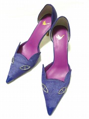 紫のハラコにラインストーンで飾られた目。これはキツネ?なのかな、多分。