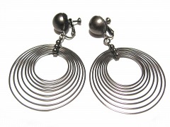おおぶりのイヤリング。いぶし銀で、工業的な金属の輝き。