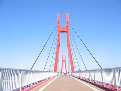 だけど空の青と橋の赤のコントラストが綺麗だったので写真をパチリ。ちょっと気に入ってます。